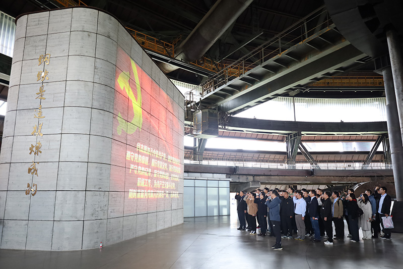 在講解人員的引導(dǎo)下,大家登上三高爐40米觀景平臺(tái)俯瞰首鋼園全貌,昔日“鋼鐵巨龍”的輝煌過(guò)往歷歷在目,一代代工人先輩與黨員同志的辛勤付出,凝聚成砥礪前行的強(qiáng)大精神力量。在9.7米出鐵平臺(tái),通過(guò)觀看《鋼鐵是這樣煉成的》光影沙盤,直觀領(lǐng)略了“黨建+技術(shù)創(chuàng)新”讓工業(yè)遺產(chǎn)煥發(fā)出新生機(jī)。最后,全體人員莊嚴(yán)宣誓,重溫入黨誓詞,將紅色基因與奮斗精神融入心間。