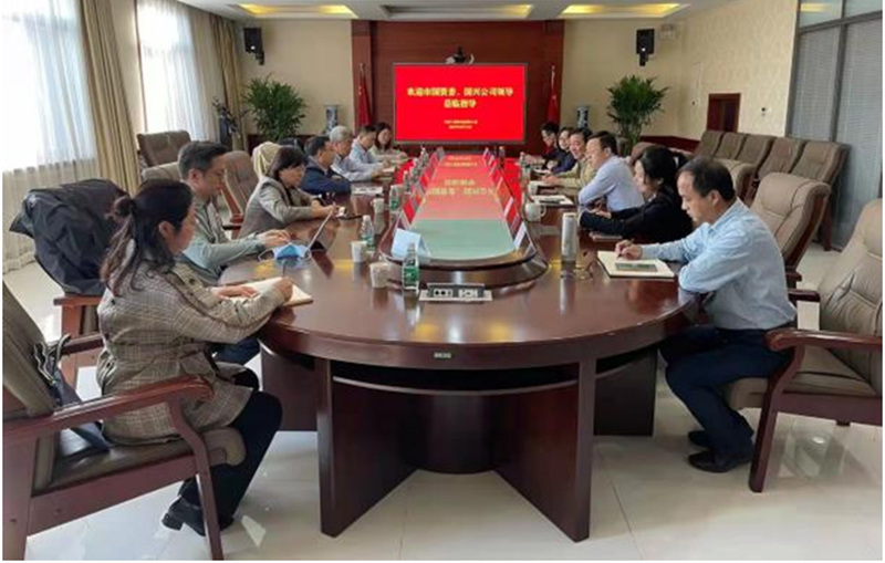 市國資委企業改組處處長張萍、畢婭囡,國興資本公司戰略投資部部長趙挺穎、綜合辦公室副主任劉家梅等參加。