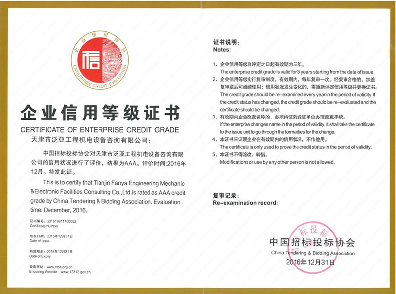 企業信用3A等級-招標