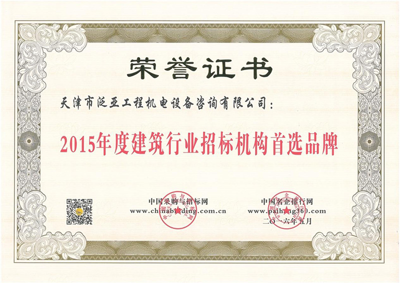 2015年度建筑行業(yè)招標(biāo)機(jī)構(gòu)首選品牌