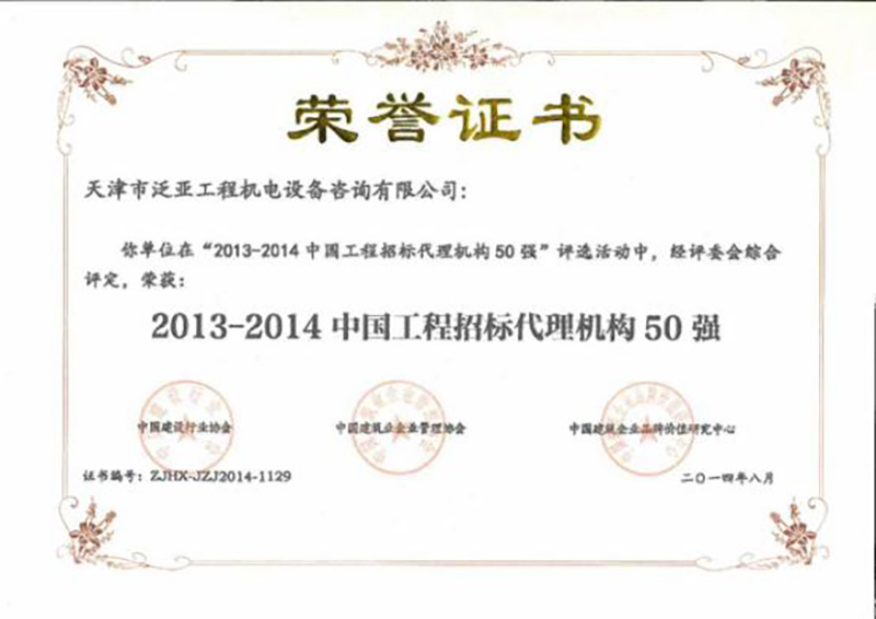 2013-2014中國工程招標(biāo)代理機構(gòu)50強